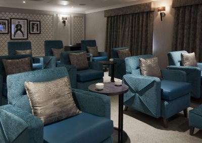 - Comfortable lounges, library and cinema